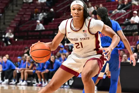 Played in all 31 games for the Seminoles during the 2021-22 season, averaging 17.8 minutes per game…nine double-figure scoring games, with a high of 12 points and an average of 6.6 points per game…finished with a 62.3 percent (86-of-138) shooting average from the field…averaged 3.6 rebounds per game and led the Seminoles with a total of 31 blocks…10th Seminole true freshman to lead the team in blocked shots…top 6 among ACC freshmen in scoring (sixth) and rebounding (fifth)...nine games in double-figure scoring…totaled 10 points in 18:39 vs. UNF in FSU debut…12 points and five rebounds against Milwaukee in 22:04…first Seminole freshman since Valencia Myers in 2018-19 to start her career with three straight double-figure games, scoring 12 points with eight rebounds vs. Jacksonville…scored 12 points and nine rebounds at Illinois…tallied seven points and four rebounds at Florida…12 points off the bench vs. Houston…11 points and six rebounds in 15 minutes at Wake Forest…13 points in 16:53 minutes played vs. Wake Forest at home…delivered 12 points on 6-of-11 shooting at No. 15 Georgia Tech…eight points with three steals at Clemson…12 points in 17:16 in home win vs. Clemson…nine points along with five boards vs. Virginia… eight points and five rebounds in 10:54 at Duke…six points vs. NC State in ACC Tournament Quarterfinals…eight points and five rebounds in 10:54 at Duke.